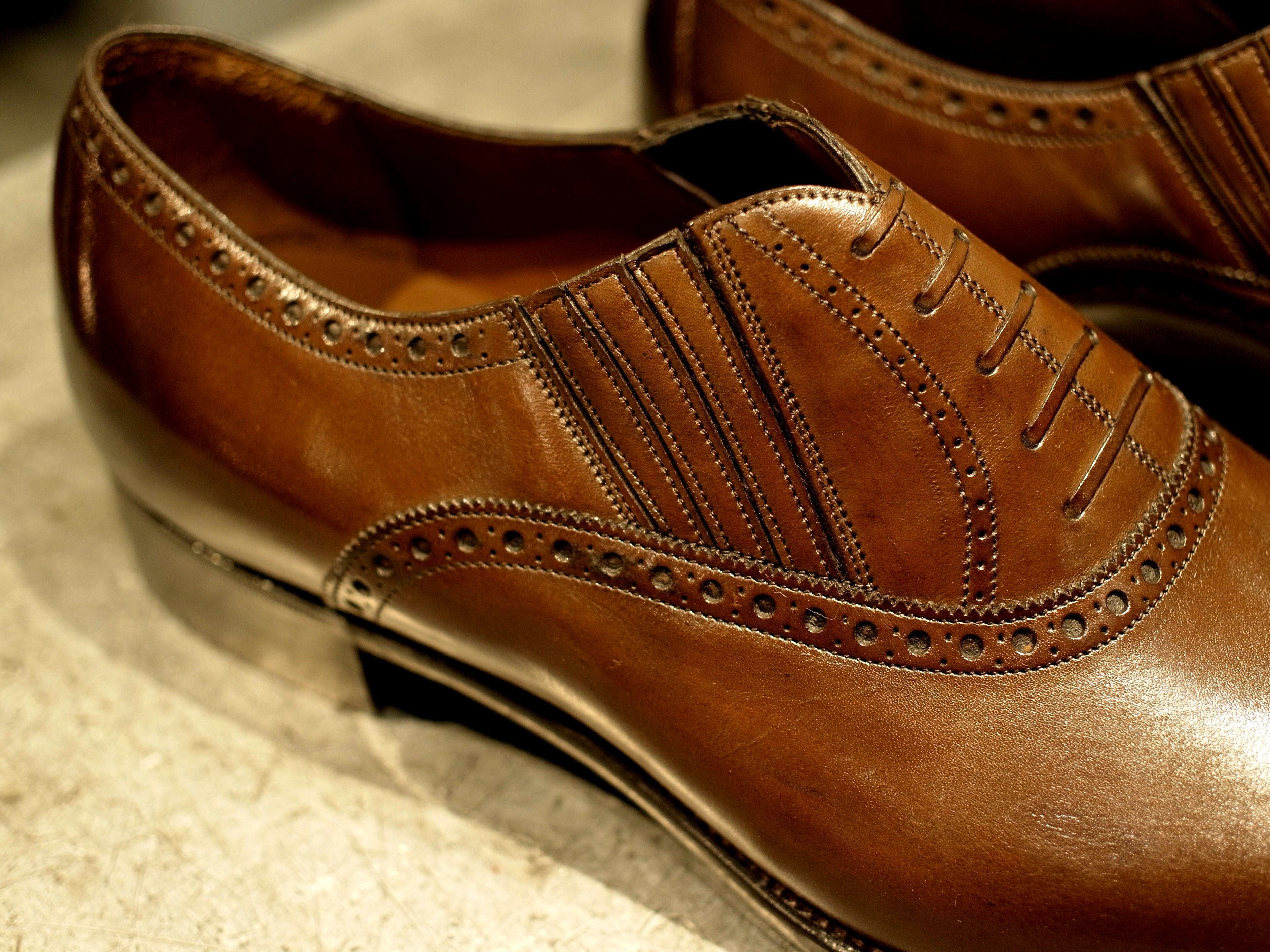 既存デザインにあるChelseaにイミテーションレース、つま先のメダリオン、レースステイのブローギングを小ぶりに変更等、随所に拘りの別注を施して完成した1足。