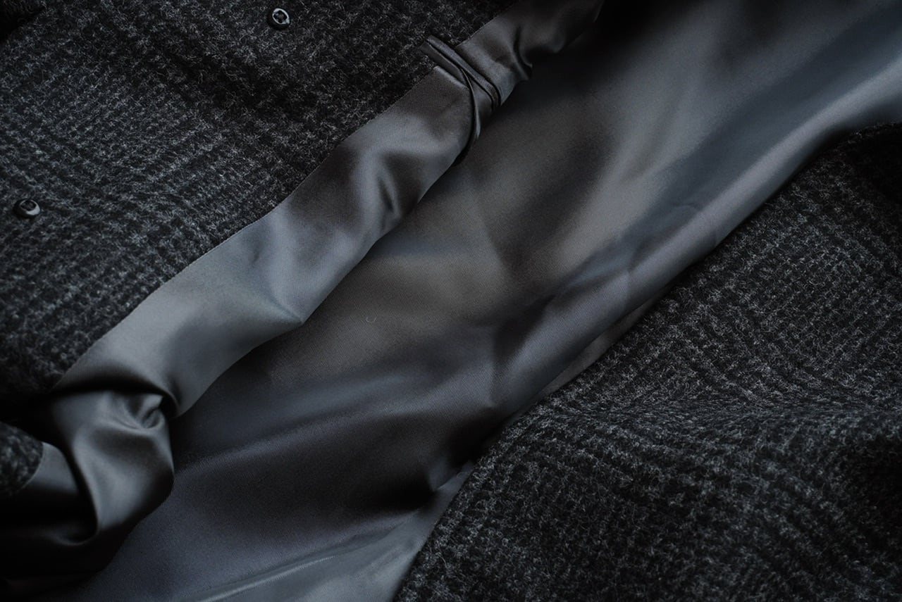 落ち着いたチャコールグレーのP.O.Wチェックは、過度な主張がなくスタイルに馴染みやすく、